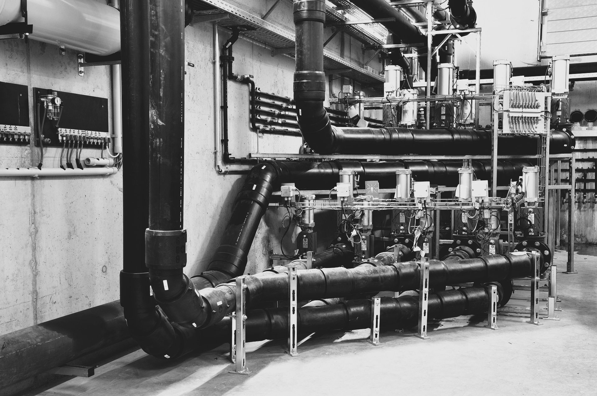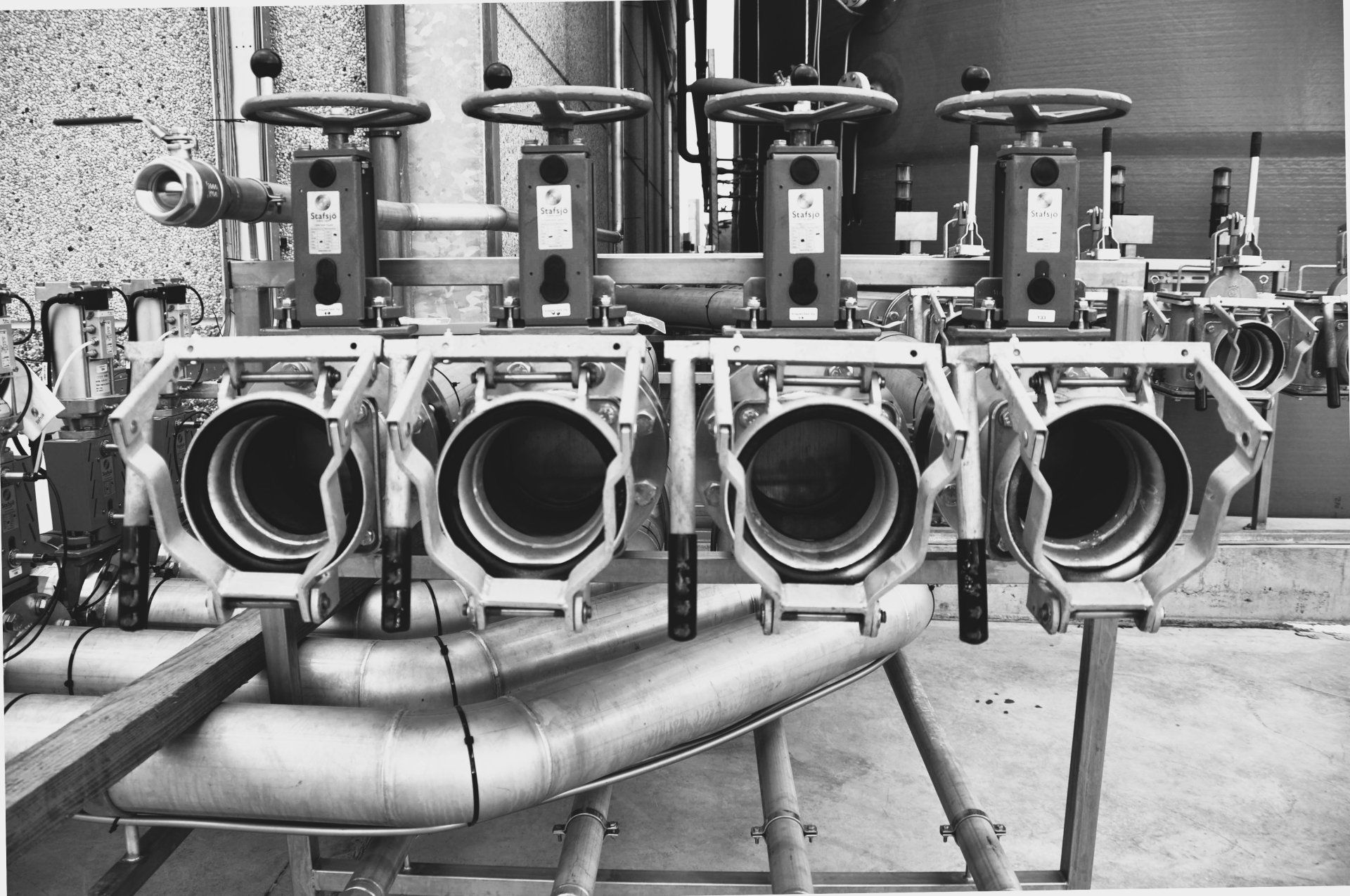 Kunststof collectoren met aansluitende piping voor een waterbehandelingsinstallatie